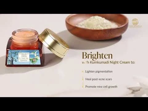 The Kumkumadi Night Cream contains powerful Ayurvedic ingredients including Manikya (Ruby) Bhasma, which helps lighten pigmentation, clarify the skin and heal post-acne scars.