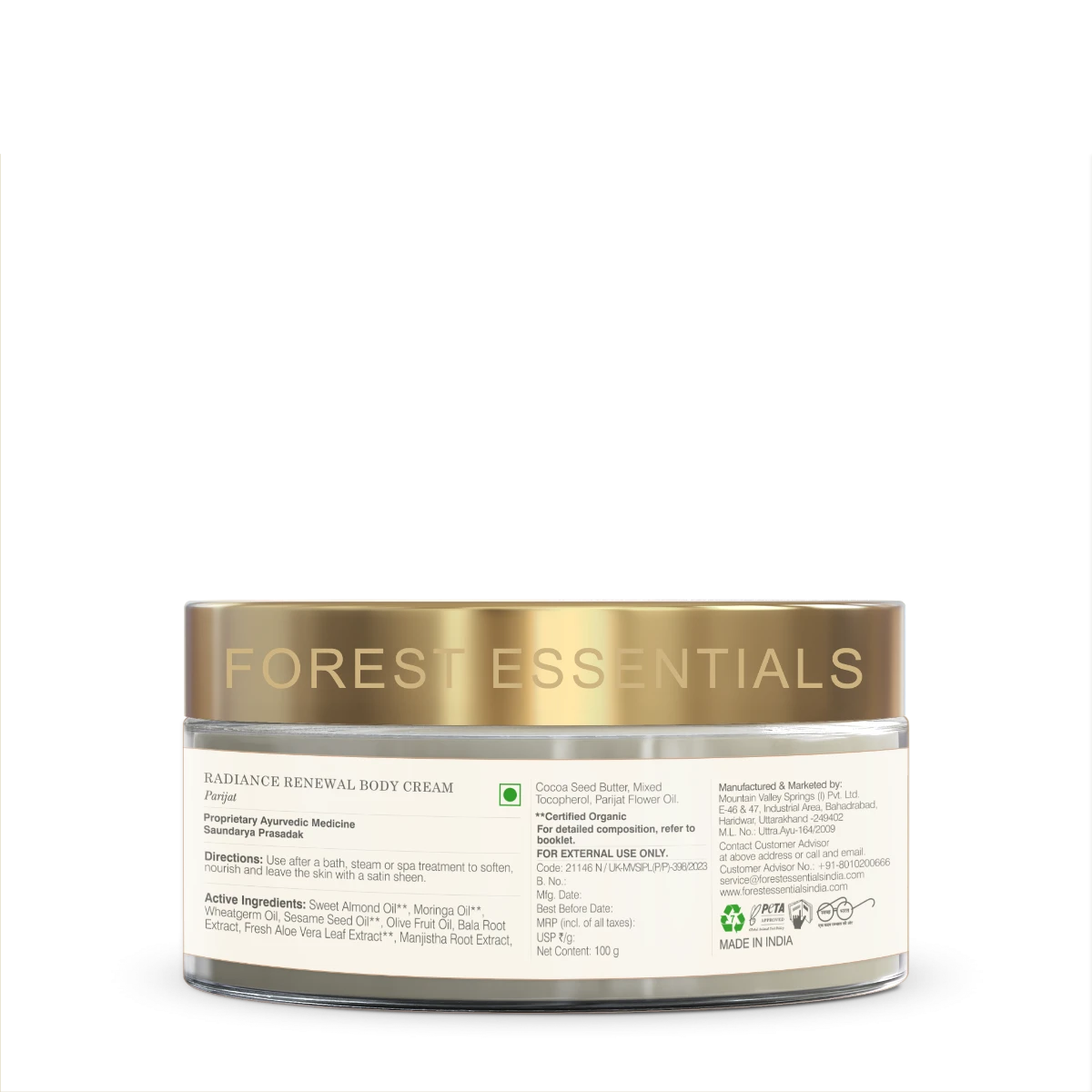 The Forest Essentials Radiance Renewal Body Cream Parijat deeply nourishes and softens the skin. It contains moisturising Sweet Almond Oil which adds glow to the skin. Wheat Germ Oil repairs the skin while keeping it soft and supple. The Parijat essential oil refreshes the skin while lightly scenting it.