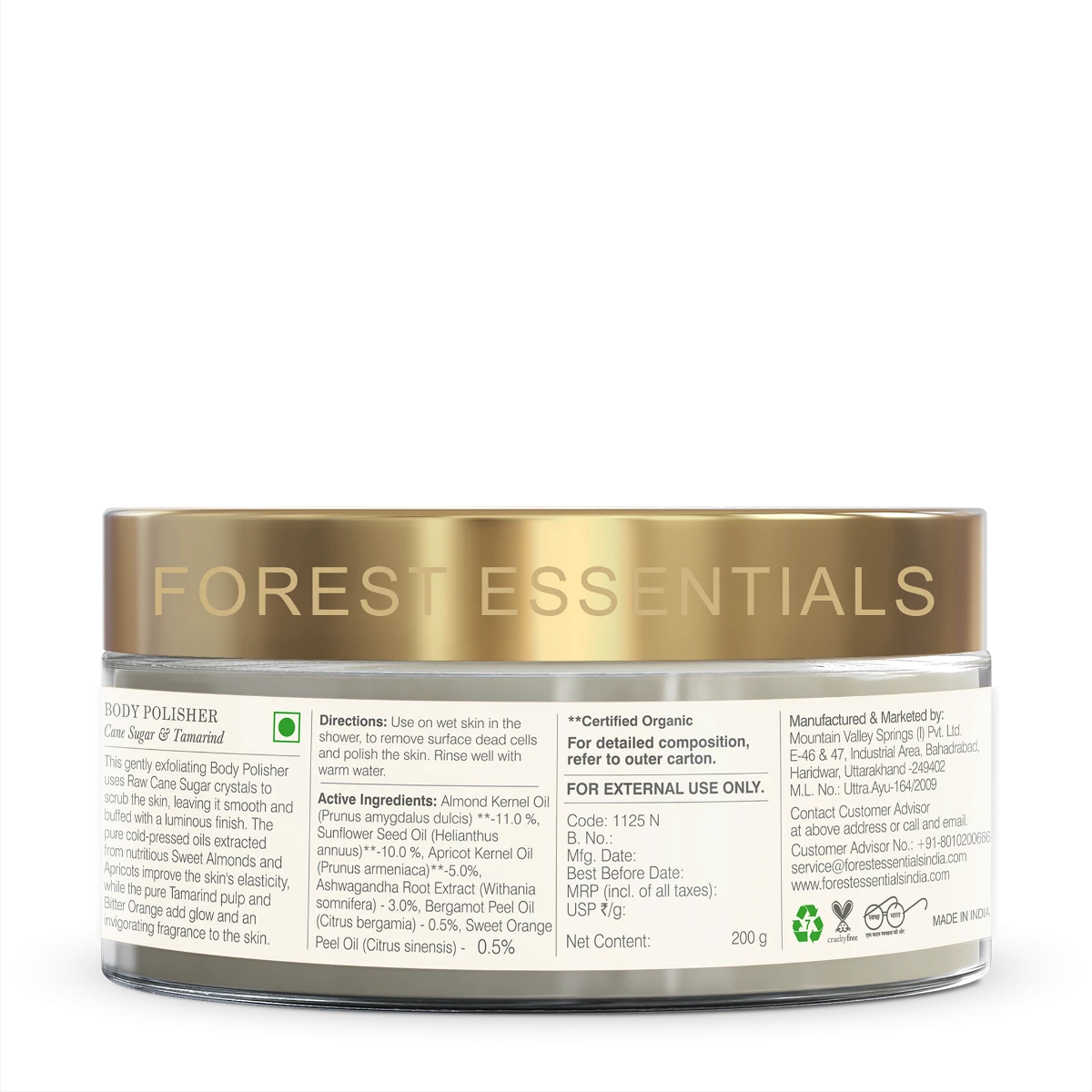 Real Cane Sugar crystals soaked in a sparkling blend of Citrus Oils with pure Tamarind pulp add a therapeutic dimension to the Forest Essentials Body Polisher Cane Sugar & Tamarind. The fresh fragrance of Bitter Orange and Bergamot leaves one feeling highly invigorated, while the raw Sugar content exfoliates, intensively hydrates and repairs the skin, leaving it gleaming and glossy.