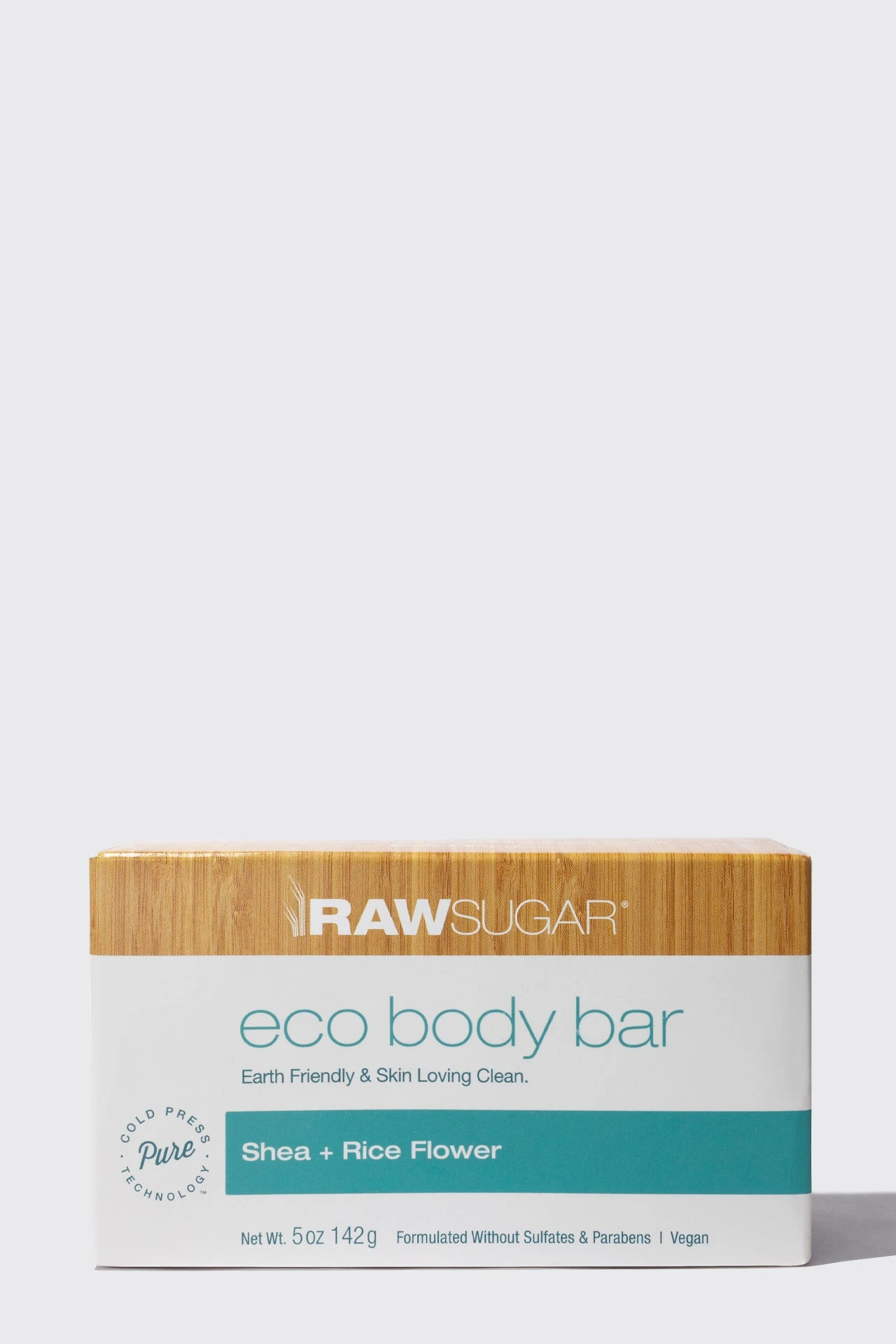 Love your skin from the outside in with Raw Sugar’s Eco Bar Soap. Crafted with a unique blend of Shea Butter, Jojoba Seed Oil, and Rice Extract, our beloved formula is designed to cleanse and revitalize skin. With each wash the skin is left smooth, hydrated, and glowing, lightly fragranced in one of our signature fresh scents. The new Eco Bar Soap is more energy efficient and uses fewer resources than liquid soap to produce. The packaging is made from recyclable and eco-friendly FSC materials. Â
