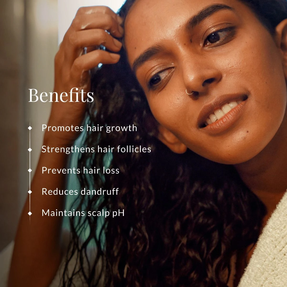- It helps to control dandruff and soothes the scalp.