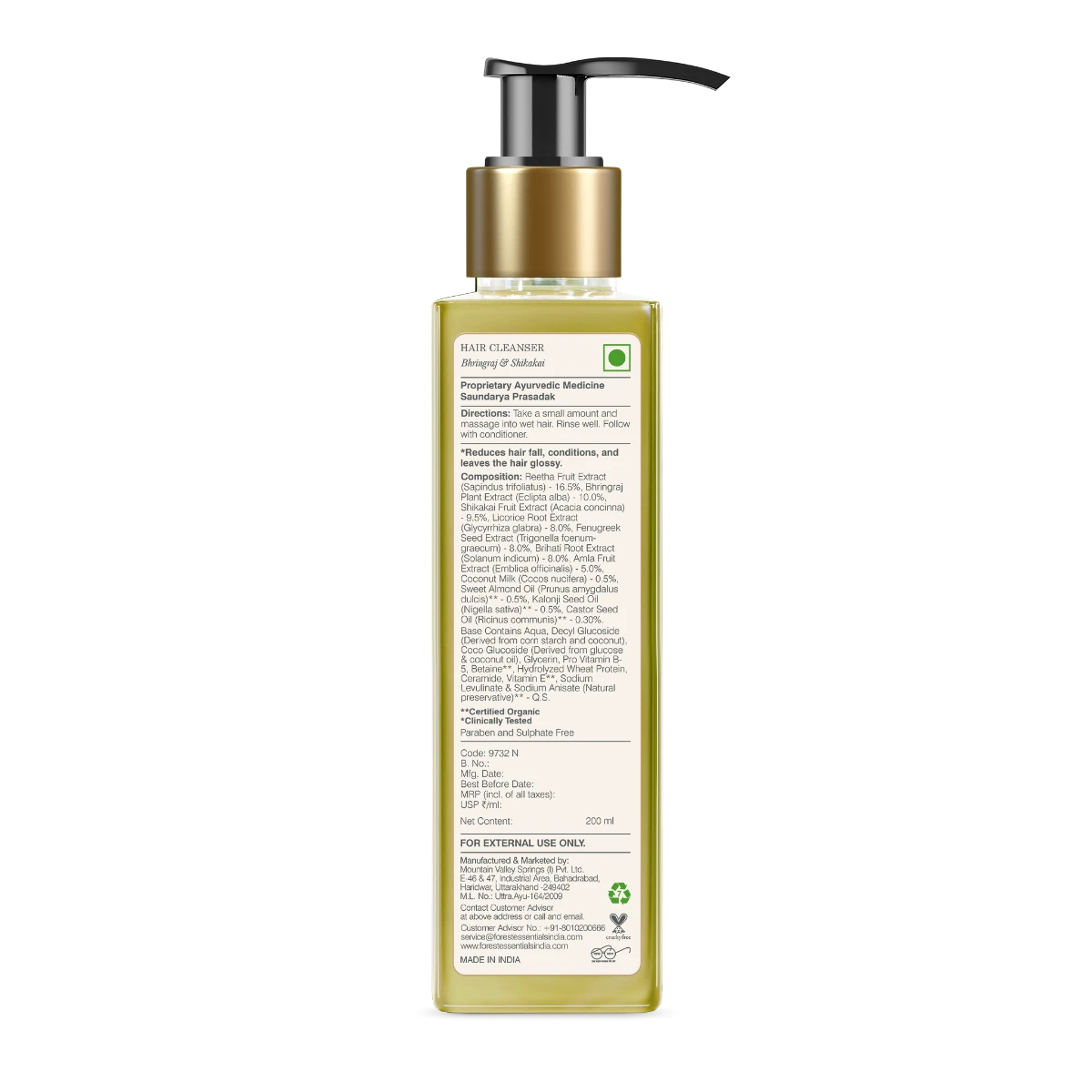 An ideal, SLS/SLES (Sulphate) free hair and scalp cleanser that controls hair thinning, breakage and promotes regrowth. This Forest Essentials Hair Cleanser Bhringraj & Shikakai contains a natural cleansing herb, Reetha to gently cleanse the scalp and hair while replenishing the natural oils. It is infused with Bhringraj, which is known as ‘food for hair’ in Ayurveda for its ability to improve hair growth and reduce hair fall, and Shikakai and Liquorice, which help to control dandruff and stimulate the growth of new hair.