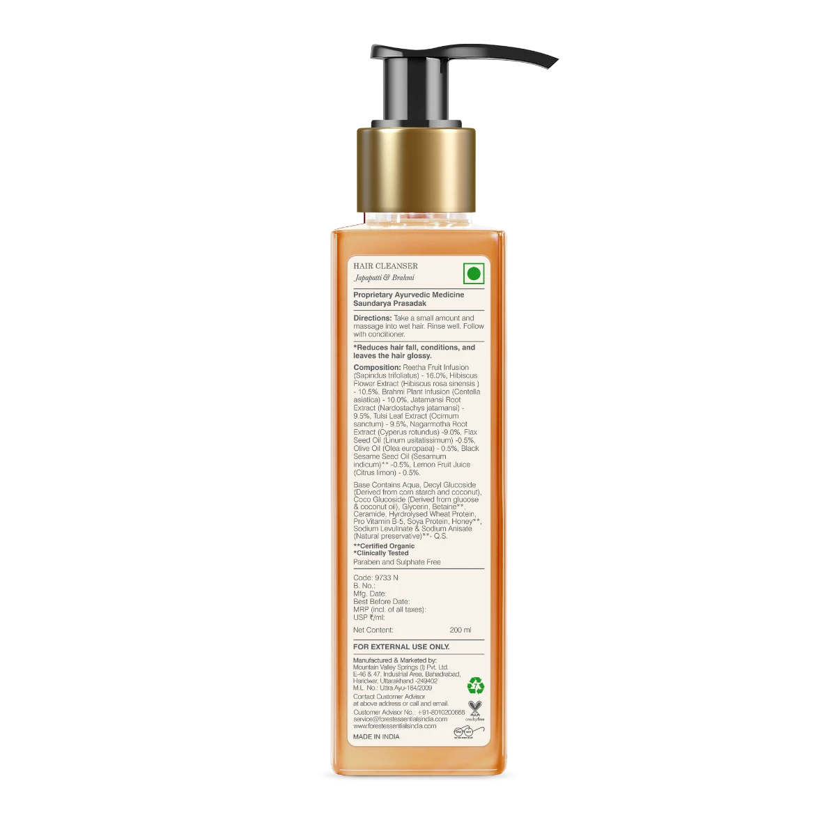 The Forest Essentials Hair Cleanser Japapatti & Brahmi is the ultimate remedy for dry, damaged and chemically treated hair. This SLS/SLES (Sulphate) free hair and scalp cleanser contains a natural cleansing herb, Reetha to gently cleanse without drying out the scalp. It is enriched with Hibiscus (Japapatti) flower infusion and Brahmi extract to rejuvenate the scalp, deeply nourish the hair and restrict hair fall, while Nagarmotha extracts prevent hair loss, premature graying & maintain natural hair color.