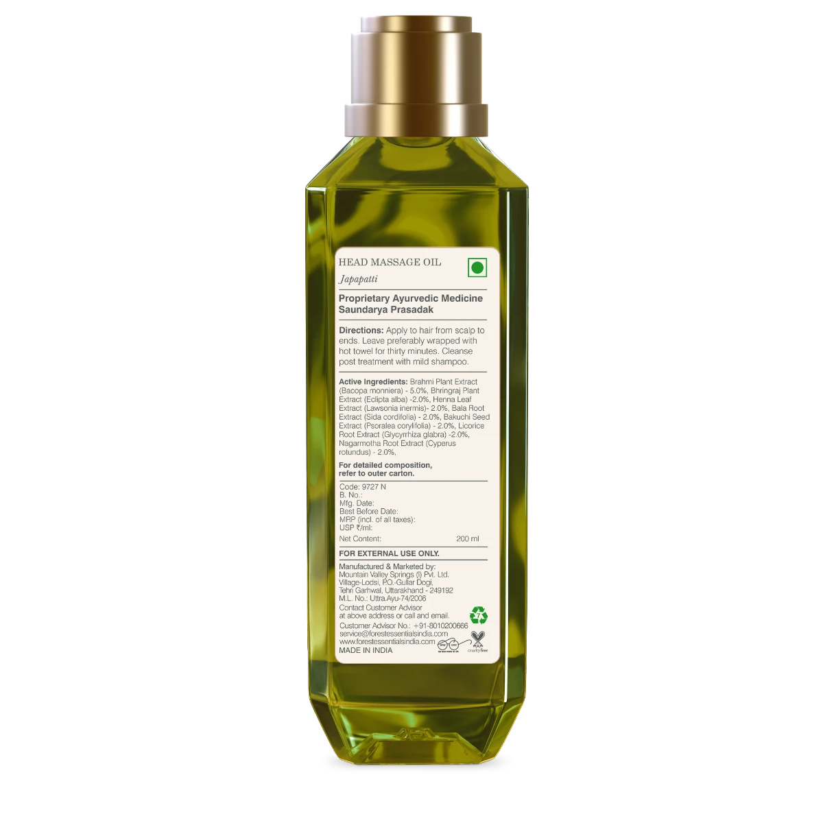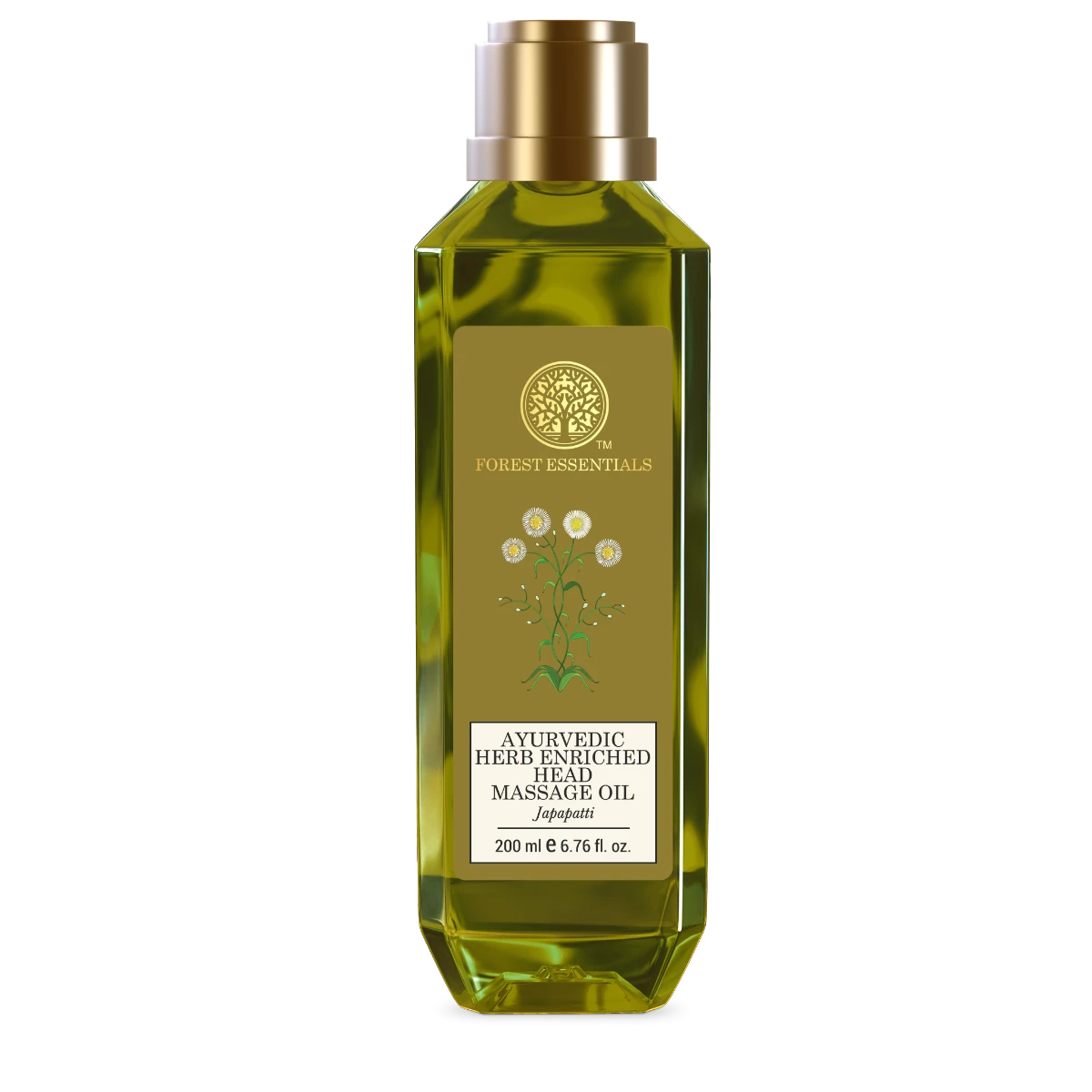 This nourishing, cold-pressed Ayurvedic Herb Enriched Head Massage Oil Japapatti by Forest Essentials uses the finest-quality Ayurvedic herbs promote healthy hair growth, and improve its overall texture and volume. It is made using an ancient recipe, documented in the Vedas, which includes Black Sesame and Virgin Coconut Oil infused with potent herbal extracts which lend lush, nourished hair.