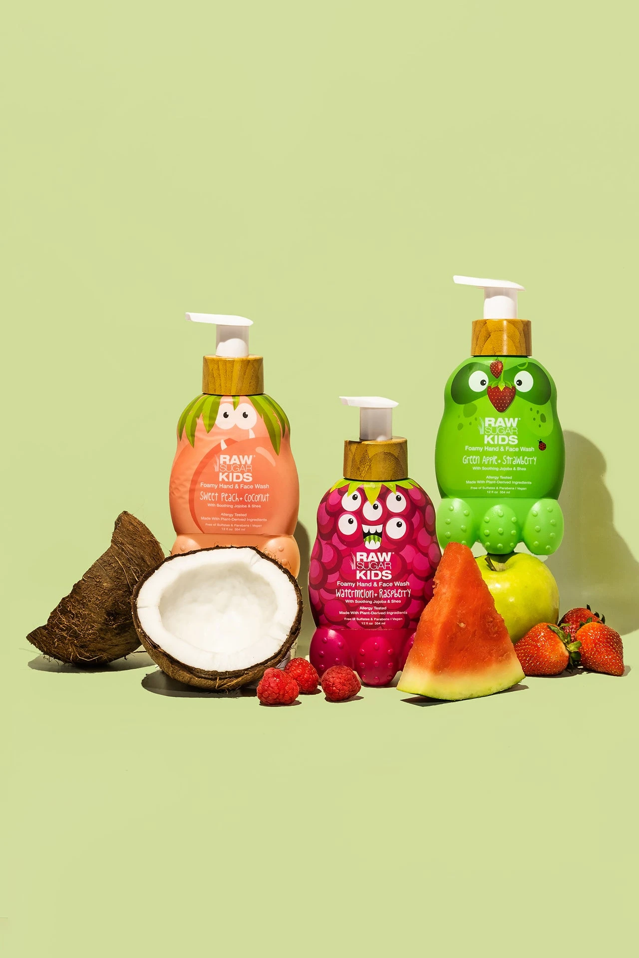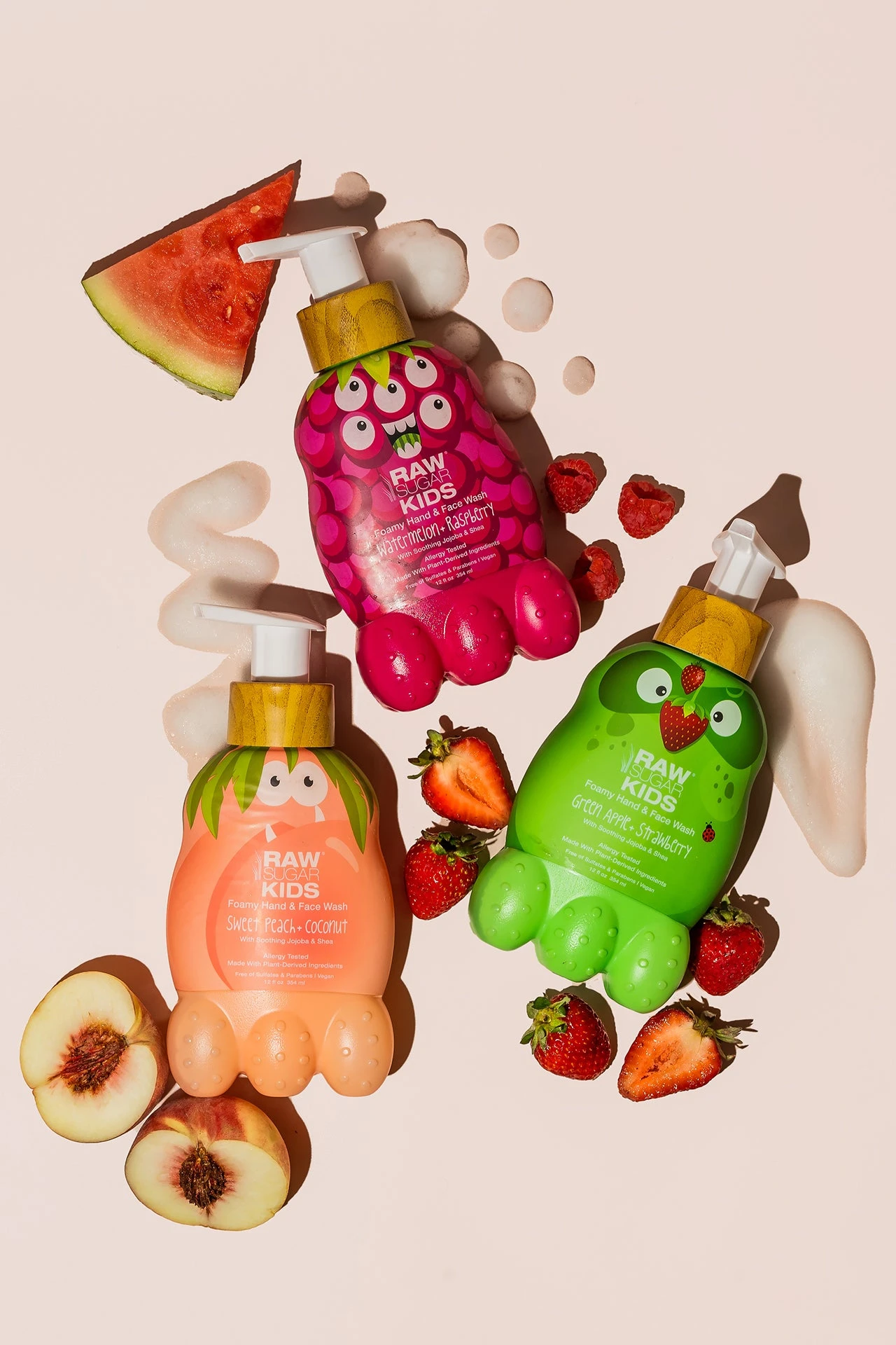 Green Apple + Strawberry: A vibrantly fresh and summer inspired scent that leaves your little ones excited and with joyfully clean hands and fresh faces.