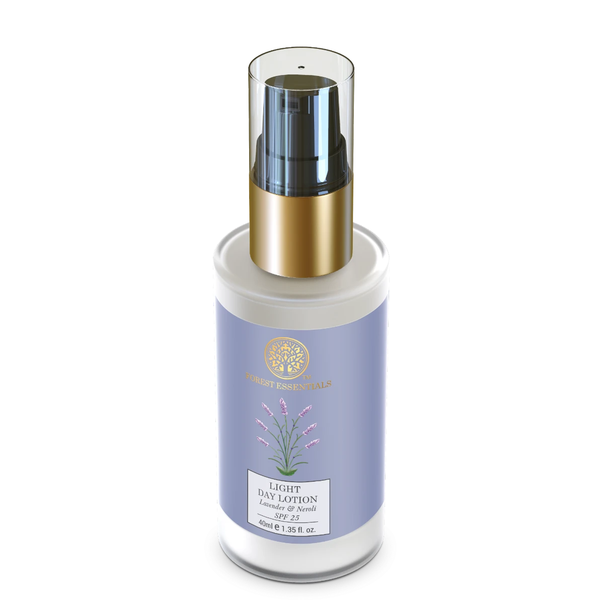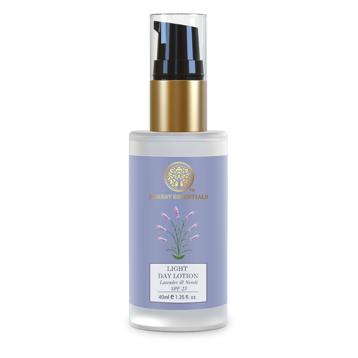 The Forest Essentials Light Day Lotion Lavender & Neroli is a superbly light moisturizer, which contains pure Lavender water that is therapeutic and calming for the skin. Nourishing Oat Kernel Extract and stimulating Neroli Oil help rejuvenate the skin. Yashad Bhasma, a natural sunscreen and herb infused derivative, is the source of SPF 25 which offers long-lasting protection from harsh rays of the Sun.