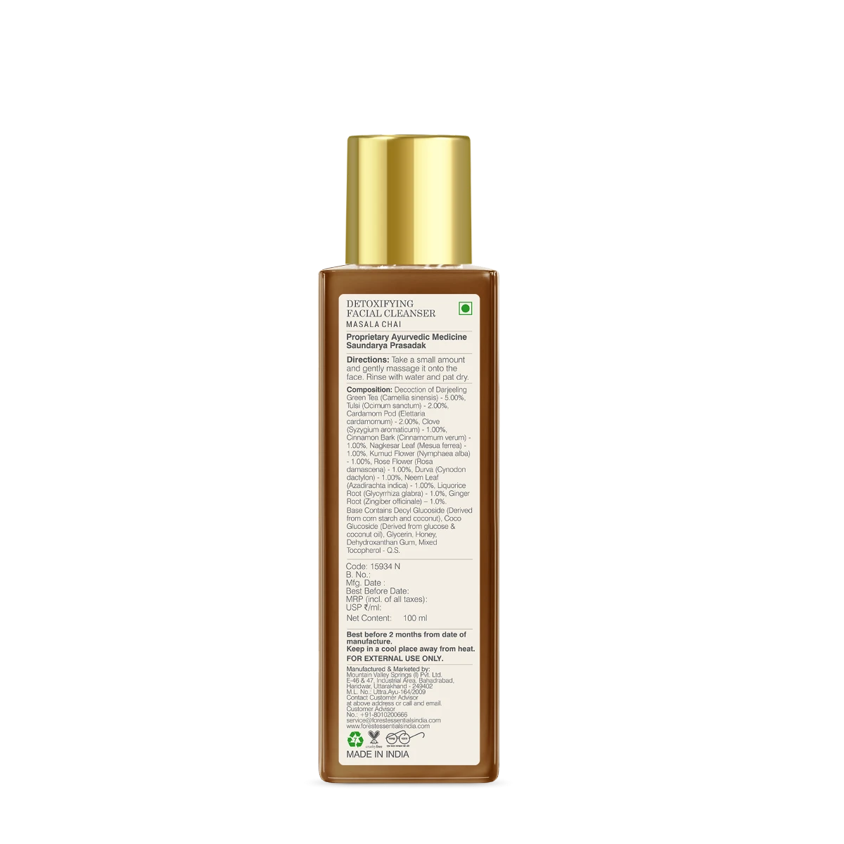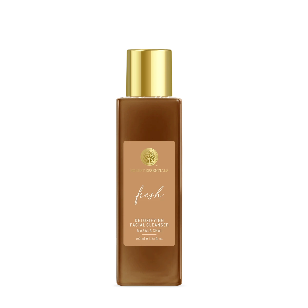 The Forest Essentials Masala Chai cleanser is a detoxifying facial blend from our Winter Fresh collection. It is a fresh decoction of Green Tea infused with warming herbs and spices like Tulsi, Mulethi, Cardamom, Ginger, and Clove, to gently cleanse and soothe the skin. This cleanser is excellent for unclogging pores and brightening the skin while providing a burst of hydration during the drying winter season.