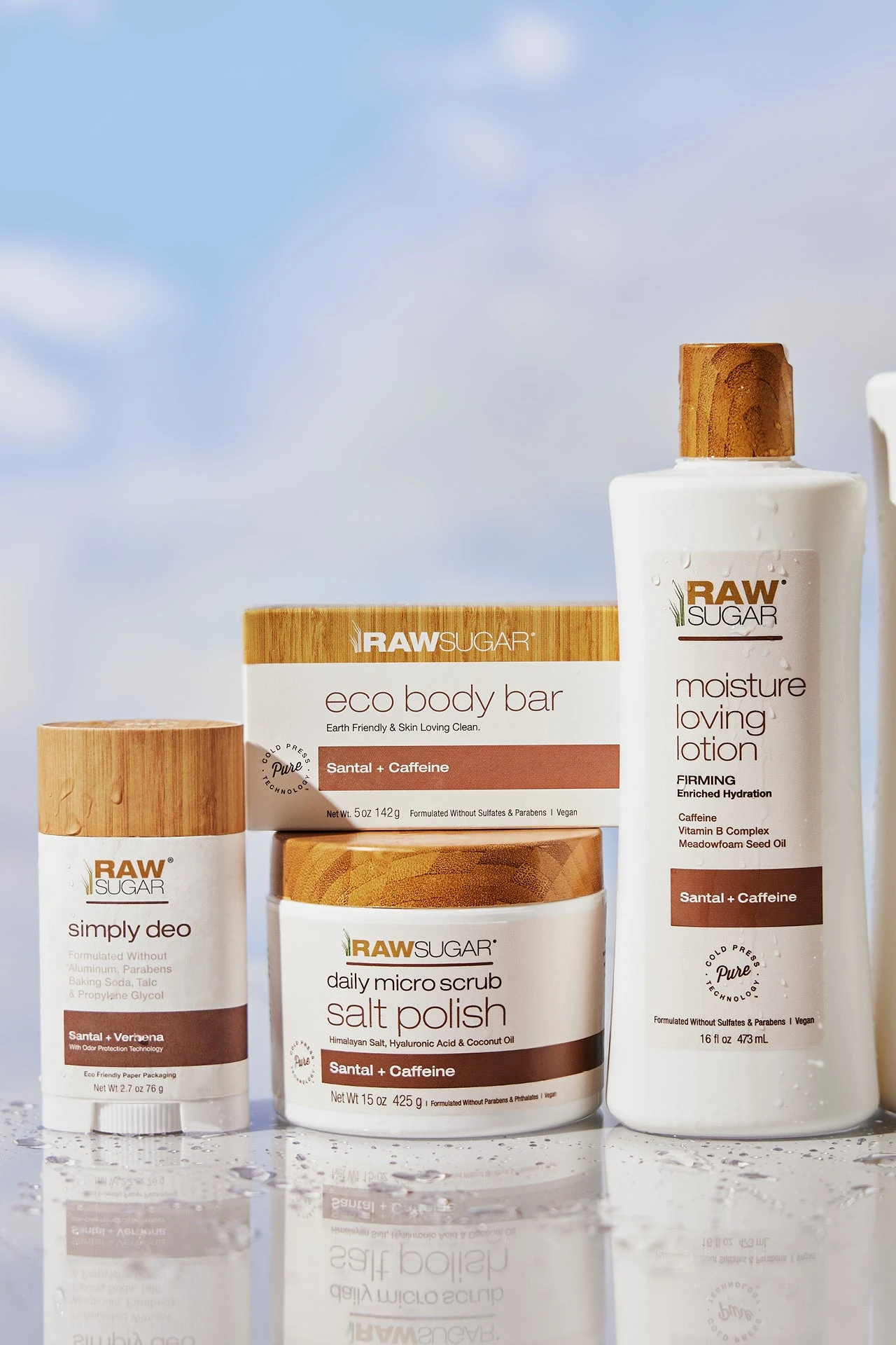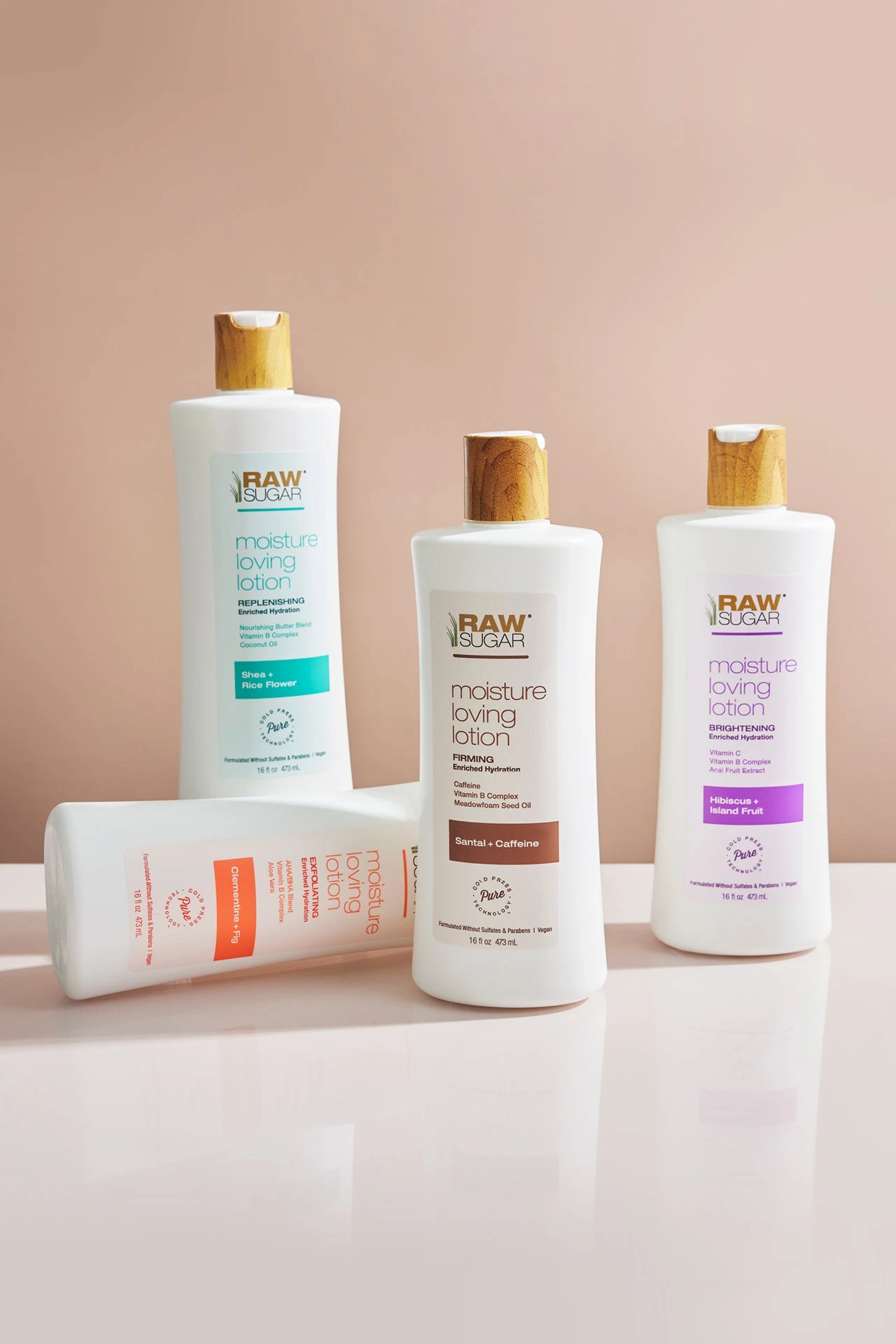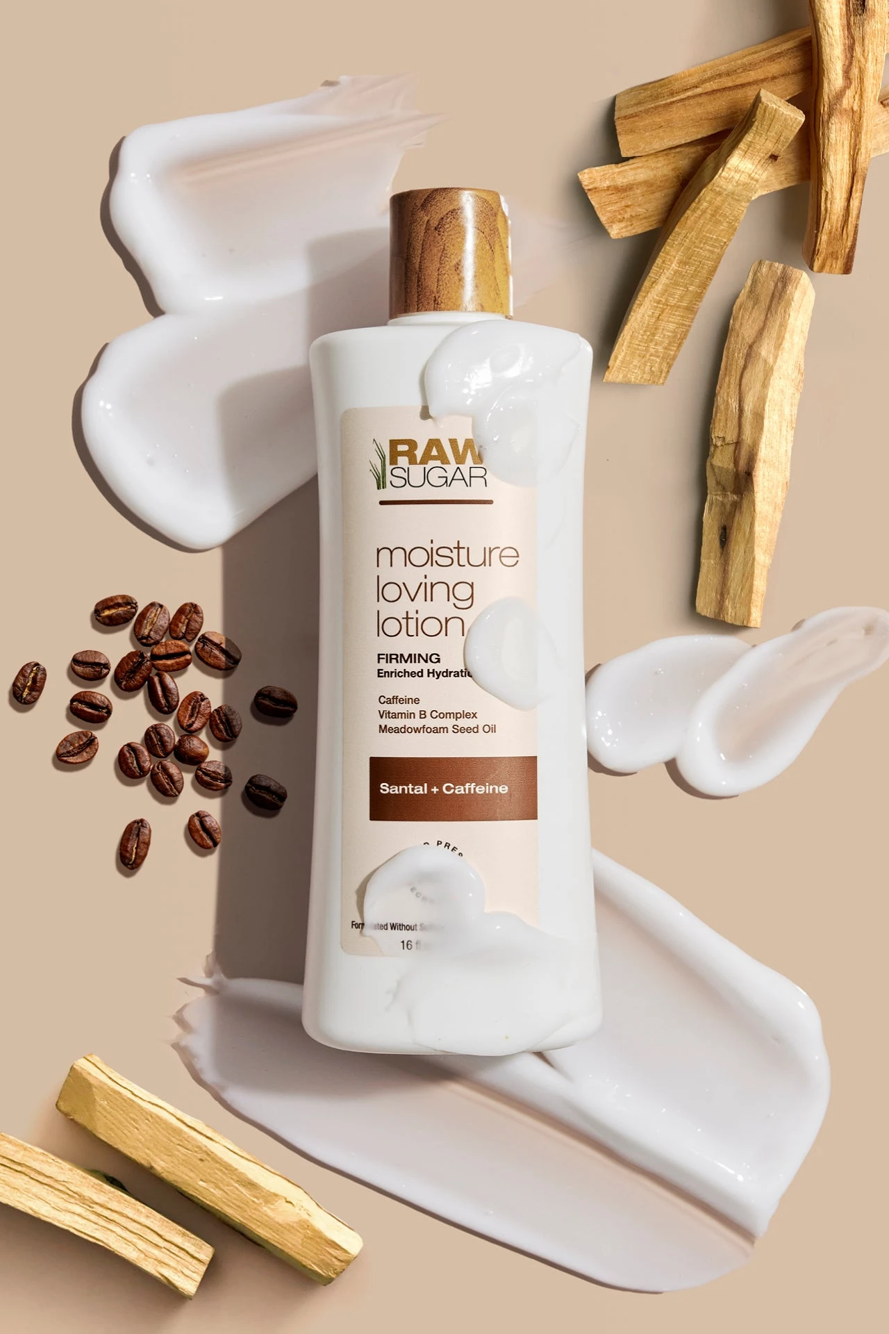 Love your skin from the outside in with Raw Sugar’s Moisture Loving Firming Body Lotion. Crafted with a unique blend of Caffeine, Meadowfoam Seed Oil, and a Vitamin B complex, our new formula is designed to help tighten, firm, and hydrate the skin from head to toe. Apply daily to see the transformation of the skin’s renewed appearance. With each use your skin will appear tighter, plumper, and more youthful while leaving it lightly fragranced in one of our signature fresh scents.Â