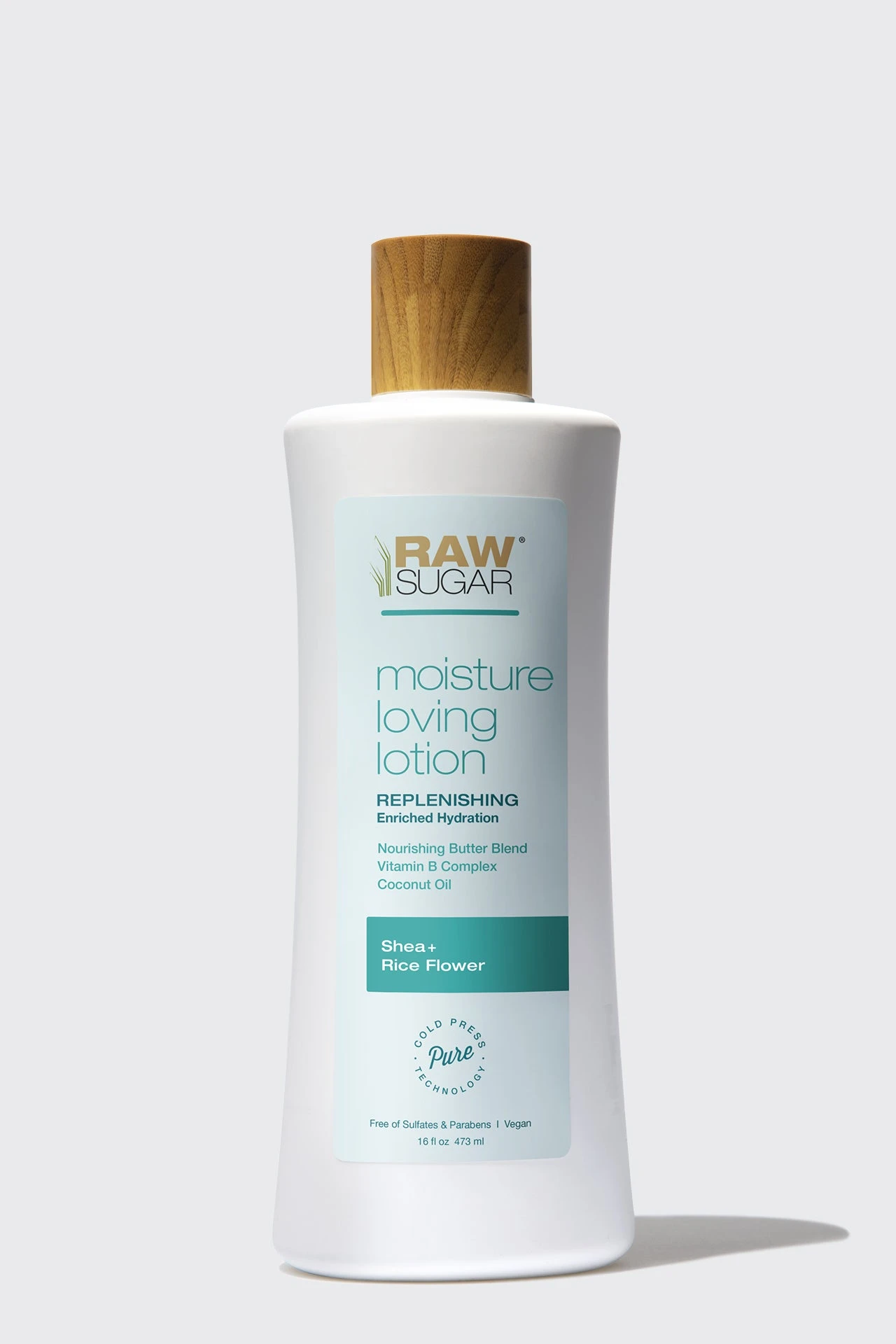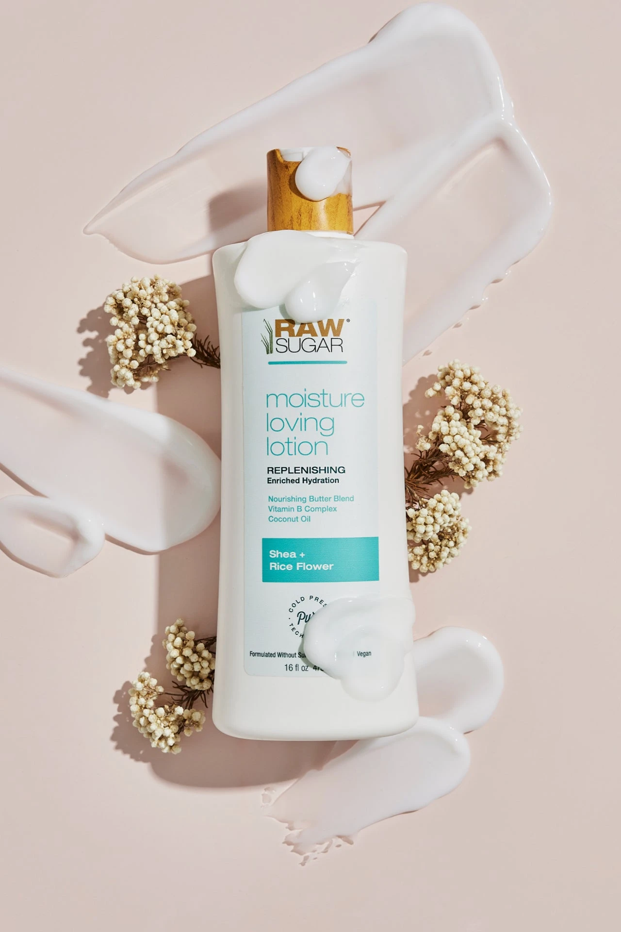 Love your skin from the outside in with Raw Sugar’s Moisture Loving Replenishing Body Lotion. Crafted with a unique blend of Shea Butter, Coconut Oil, and a Vitamin B complex, our new formula is designed to nourish and deeply hydrate the skin from head to toe. Apply daily to see the skin’s renewed appearance. With each use your skin will appear more radiant, soft, and extra smooth, while leaving it lightly fragranced in one of our signature fresh scents.