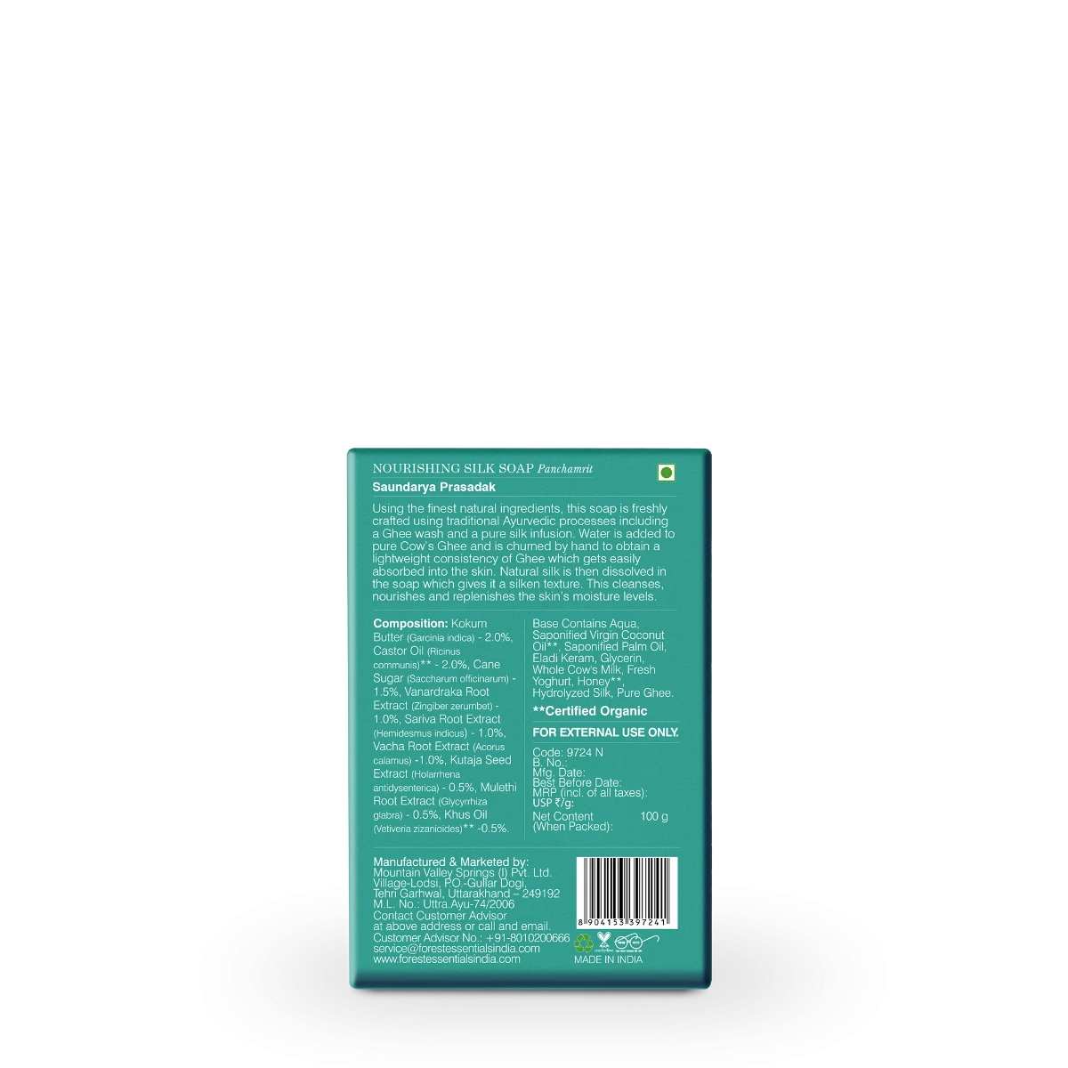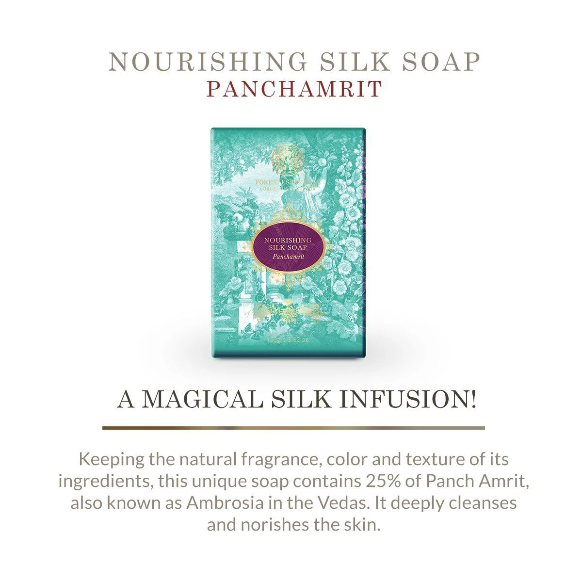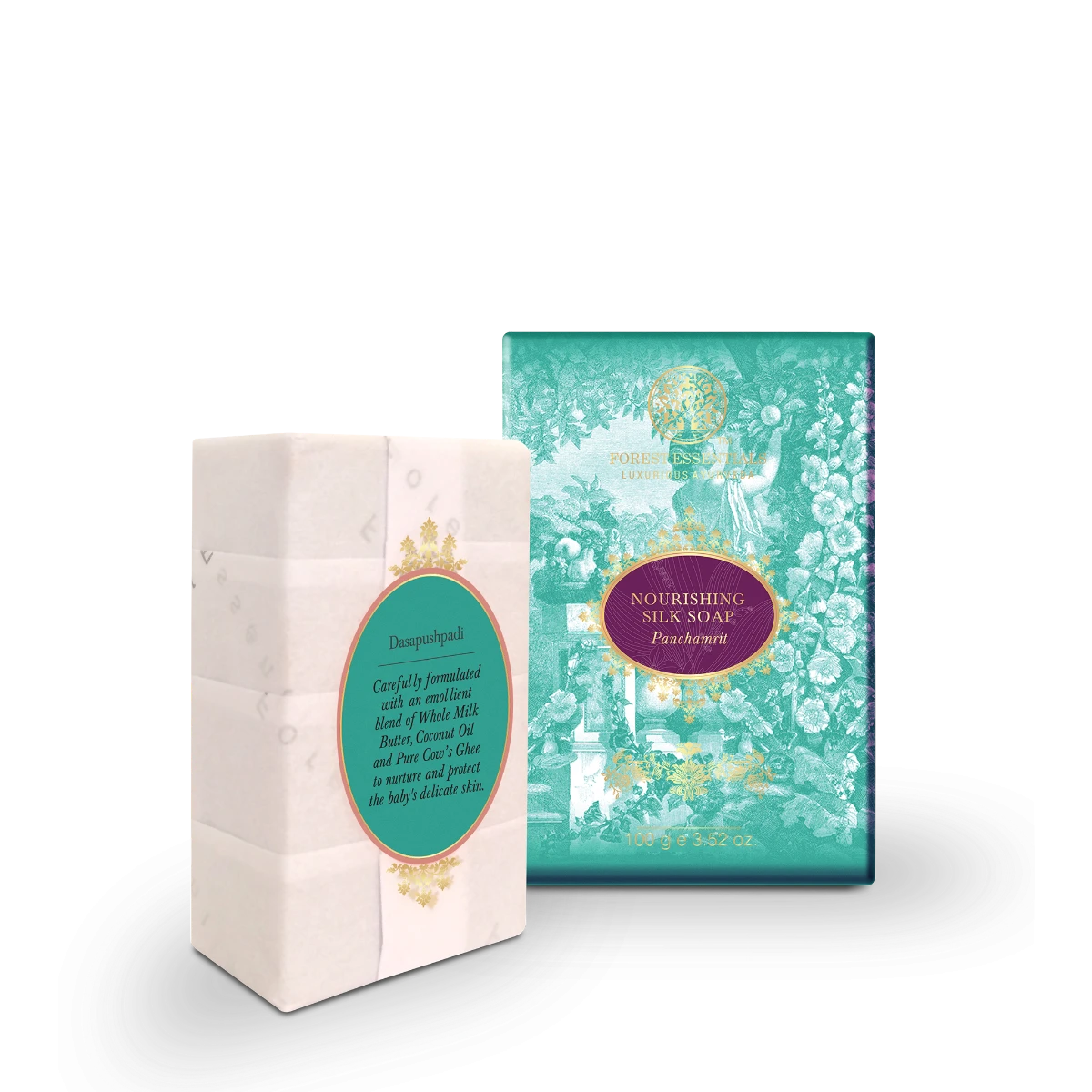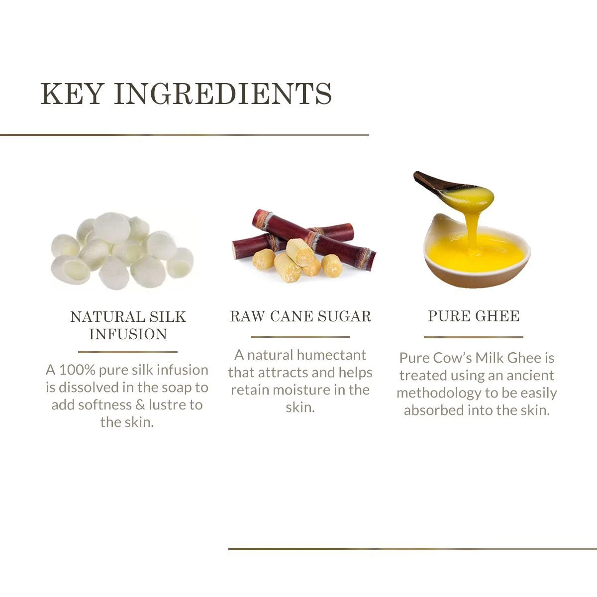 Retaining the natural fragrance, colour and texture of its ingredients, this unique soap contains 25% of Panchamrit which means a blend of ‘five ambrosias’, as per the Vedas. Infusions include Whole Cream Milk, Cow’s Ghee, fresh Yoghurt, Organic Honey, and Cane Sugar to deeply cleanse the skin while providing intense nourishment and healing dryness.