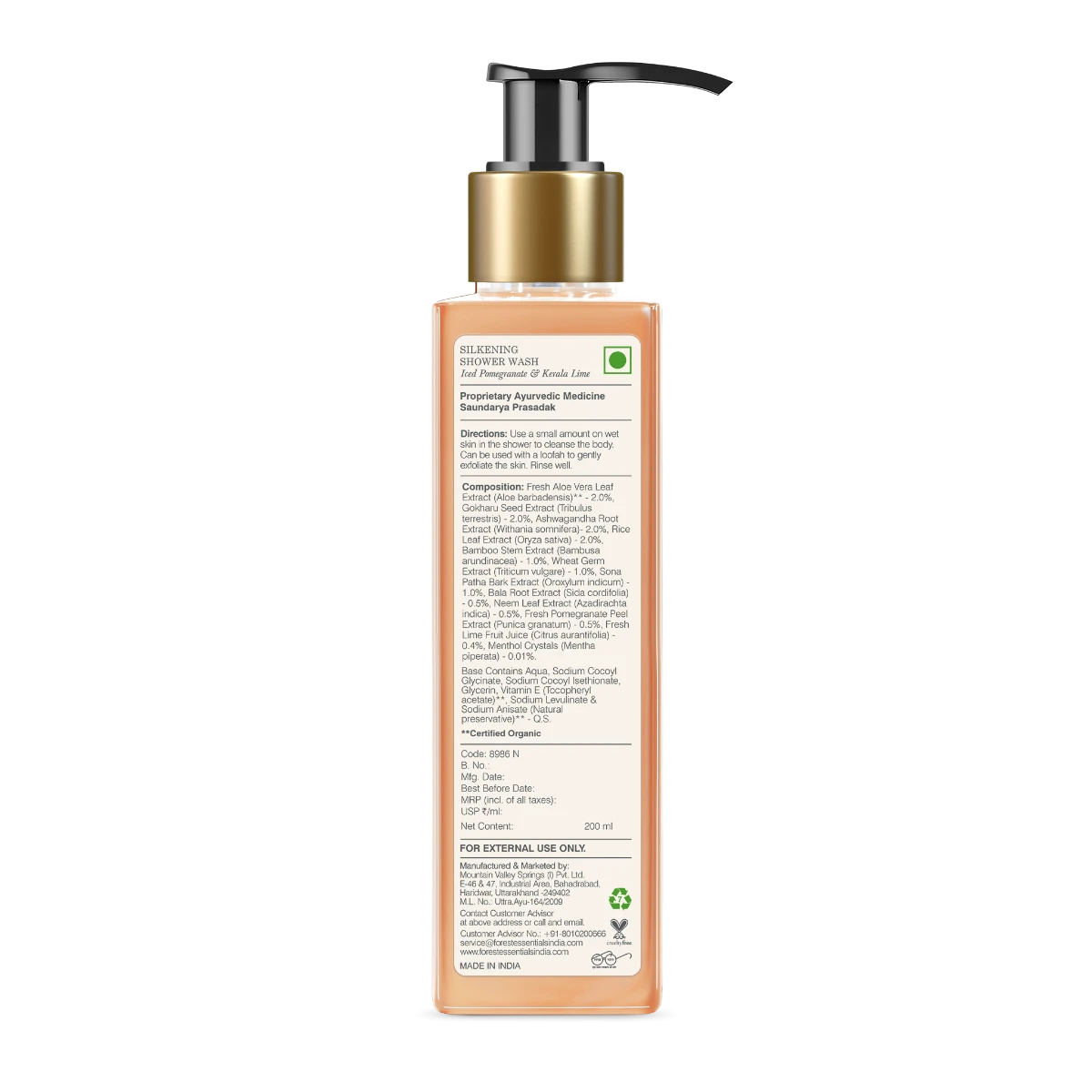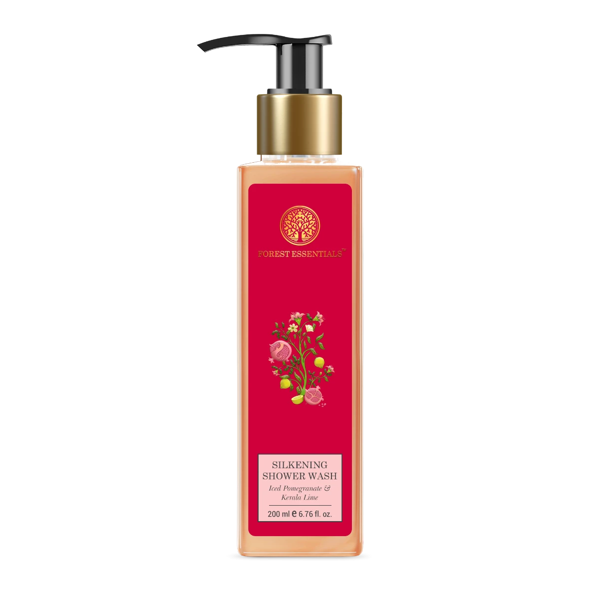 With Forest Essentials Silkening Shower Wash Iced Pomegranate & Kerala Lime, skin is left glistening, clean and hydrated. The fresh blend of antioxidant rich Pomegranate and Lime leaves skin lightly scented with subtle, citrus notes.