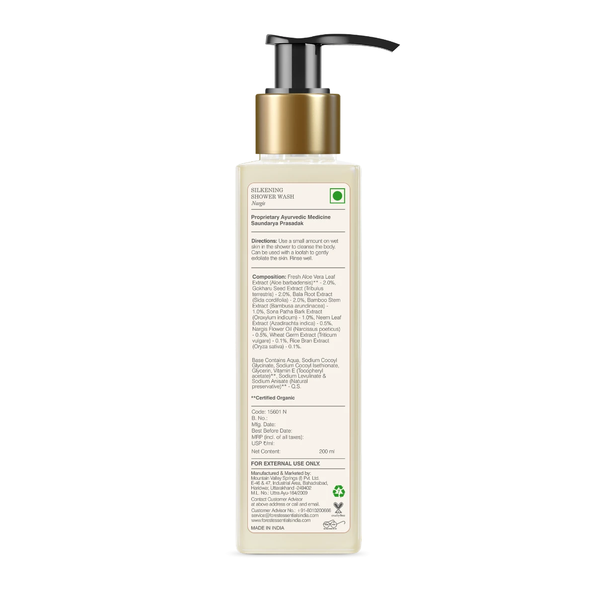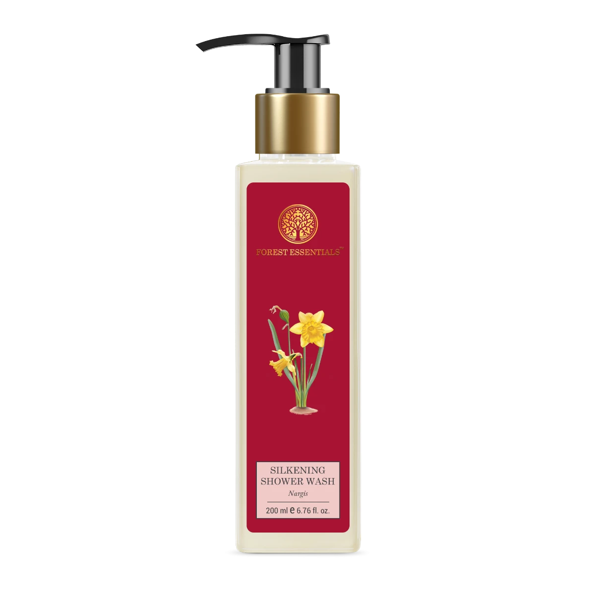 The Forest Essentials Silkening Shower Wash Nargis is infused with a natural cleansing agent, Reetha which deeply cleanses the skin, for a luxurious experience. It is enriched with the sensuous fragrance of fresh Nargis flowers, hand-plucked from the snowclad valleys of Kashmir, to leave the skin delicately and sumptuously scented.