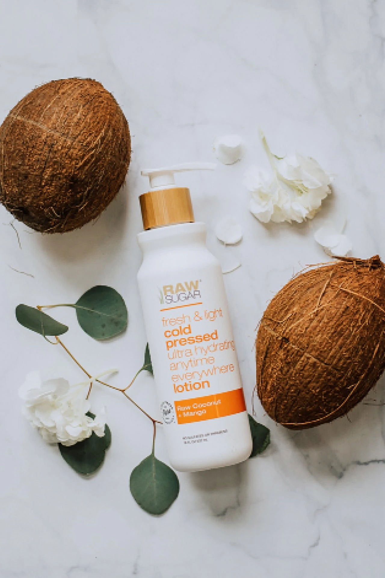 A rejuvenating body lotion infusing skin with weightless hydration. Our Raw Coconut + Mango Body Lotion is a moisture-rich blend crafted with Cold-Pressed oils, Aloe Vera, and Mango + Coconut Oil helping revive, condition, and leaving thirsty skin quenched with a happy scent.