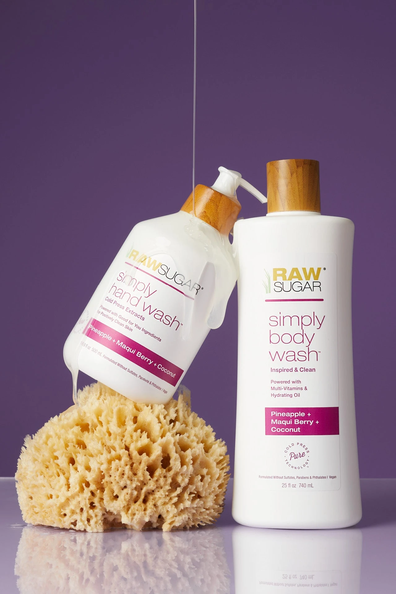 Love your skin from the outside in with Raw Sugar’s Simply Body Wash. Crafted with a unique blend of antioxidants, fruit extracts, hydro-peptides and hydrating oils, our formula is designed to cleanse, nourish, and revitalize the skin. It’s body wash that’s simply better for you and the planet.Â